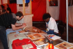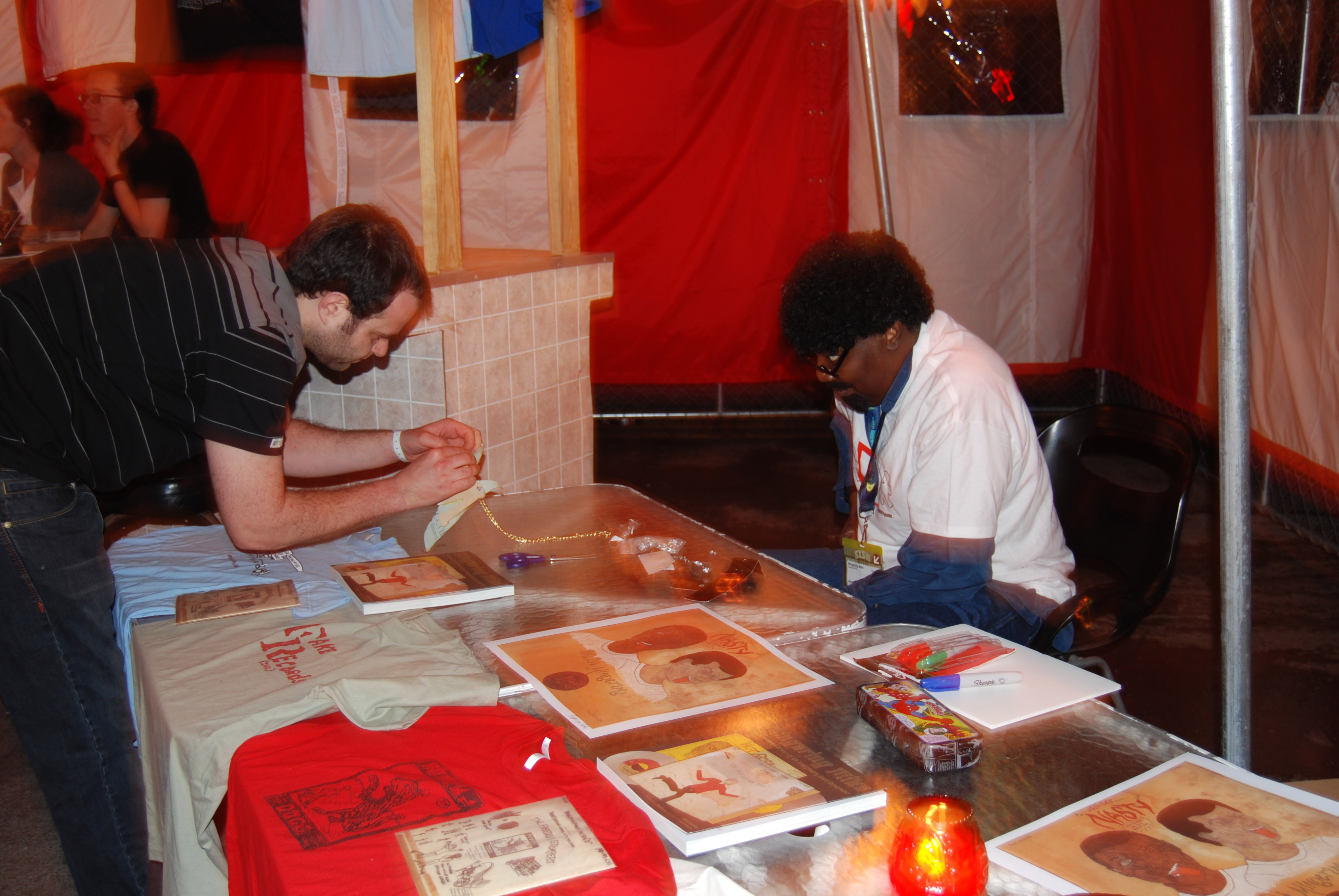 Dori helps Mike set up merch. If you don’t know the amazing story of Mingering Mike, you should!