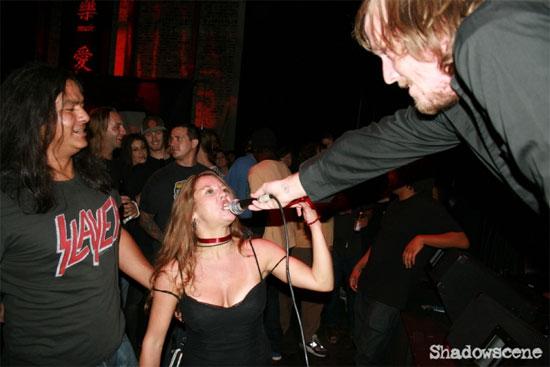 As Joe postured and growled his way through the set, these creatures became bolder, rushing the stage and trying to grab the mic from Joe’s sweaty paws. One woman, old enough to have given birth to almost everyone there, kept gyrating on top of the monitor and throwing herself at the mic stand repeatedly. No amount of security could restrain her, and soon the beefy dudes just gave up.