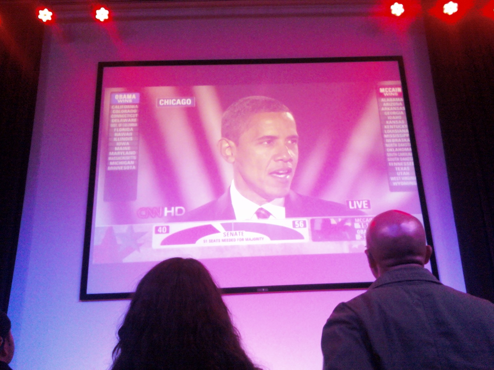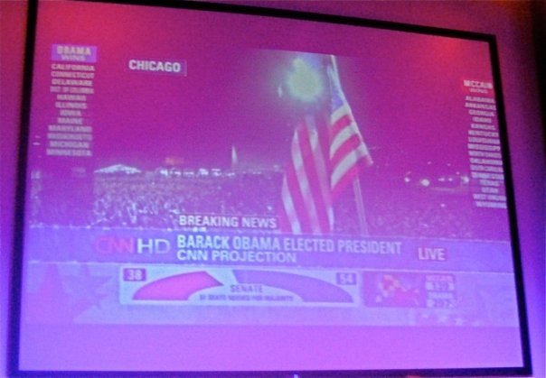 Then the countdown until the California polls closed…5, 4, 3, 2, 1…and all of a sudden, the chyron on the screen flipped…OBAMA IS THE PROJECTED WINNER…OBAMA IS THE PRESIDENT ELECT.