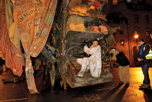 The movie follows an immortal man, Dr. Parnassus, who travels in an old dilapidated circus wagon, trying to entertain the people of contemporary London with his vaudevillian stories. His hidden agenda is to also save a few souls along the way, in order to repay a bet he lost with the devil. Dr. Parnassus is saddled with his immortality – a storyteller and showman who has become obsolete, as no one wants to hear his stories anymore. His antiquated Punch And Judy styled stage cannot compete with London’s bright lights and dazzling technology. Dr. Gilliam err, I mean Parnassus, knows this and feels lost in a world where he will never grow old but will never be new.