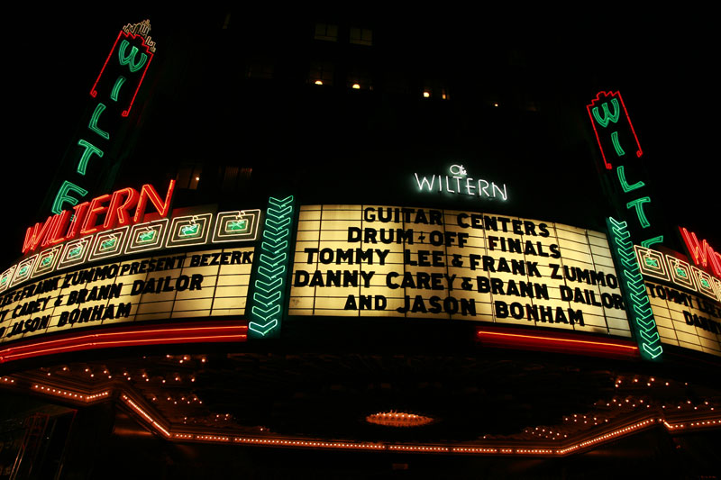 The Guitar Center’s 2009 Championship Drum Off’s moved this year to the Wiltern and that wasn’t the only moving on up they did. The contest with the $25,000 cash prize also featured a Tommy Lee headlined Bezerk spectacle, including performances by Max Weinberg (from both Bruce Springsteen and Conan O’Brien fame) playing in tandem with his son Jay, Chad Smith (RHCP), Matt Sorum (Guns & Roses), Sully Erna (Godsmack), Frank Zummo (Street Drum Corps) and more.