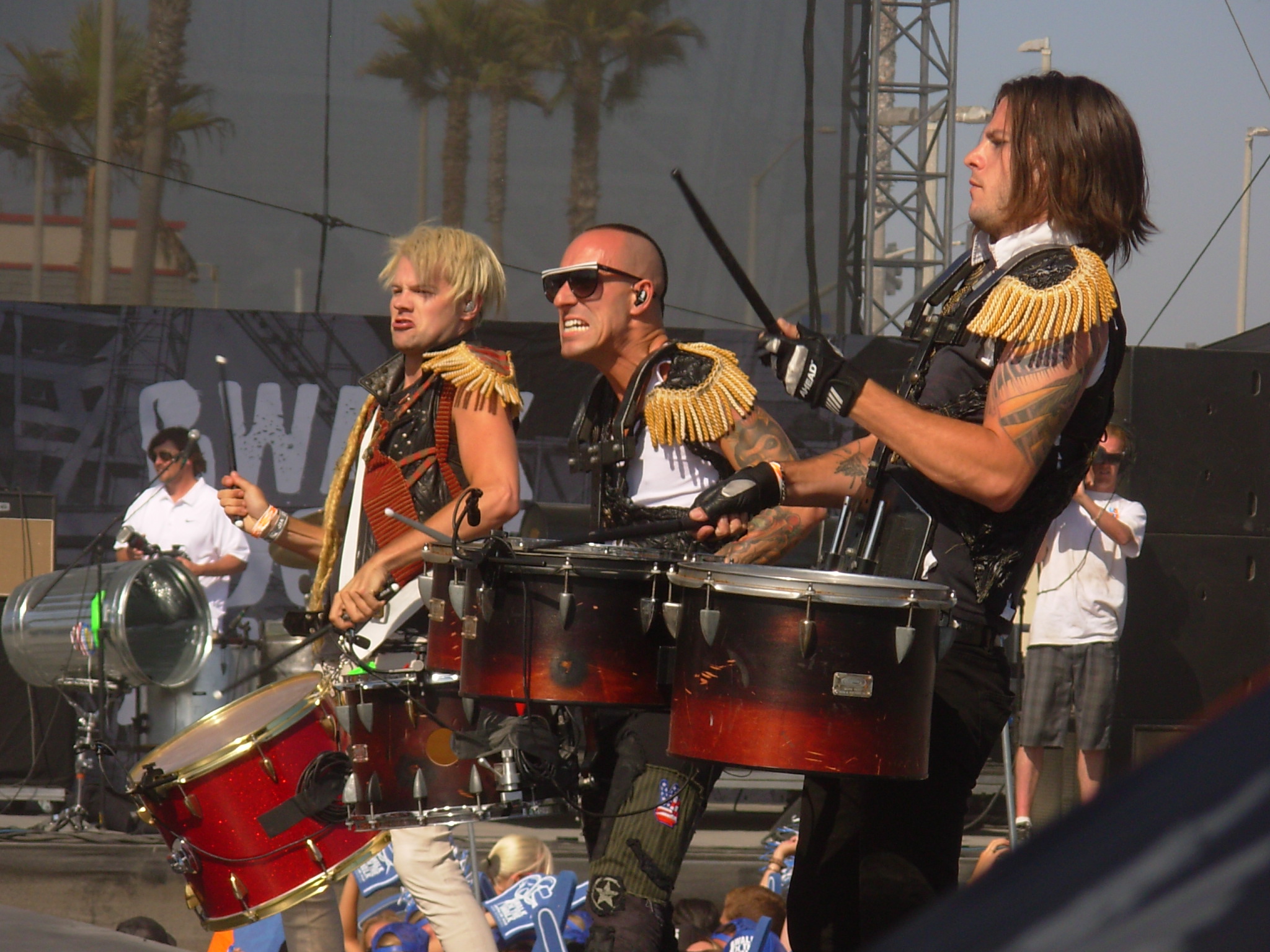 So this is why I found myself heading down to ‘the HB, yo’ to see the lads in Street Drum Corps, where they were performing a set at the US Open Of Surfing. Having played the Bamboozle tour, The Alt Brothers and Frank Zummo are no strangers to drumming in the hot sun, but this was right on the beach, right on the water, in close proximity to surf, sand and sunscreen. How would all the leather and studs and war paints hold up in these conditions?