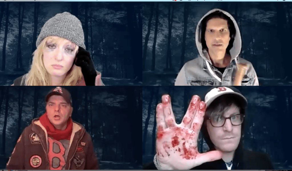 The play, which has the dialogue spelled out phonetically in a Boston dialect, also includes a fight scene, which was carefully crafted and choreographed to work for a Zoom production. “We are limited within this medium. So I had to come up with the best way to show this fight, with all four actors being in separate places.”