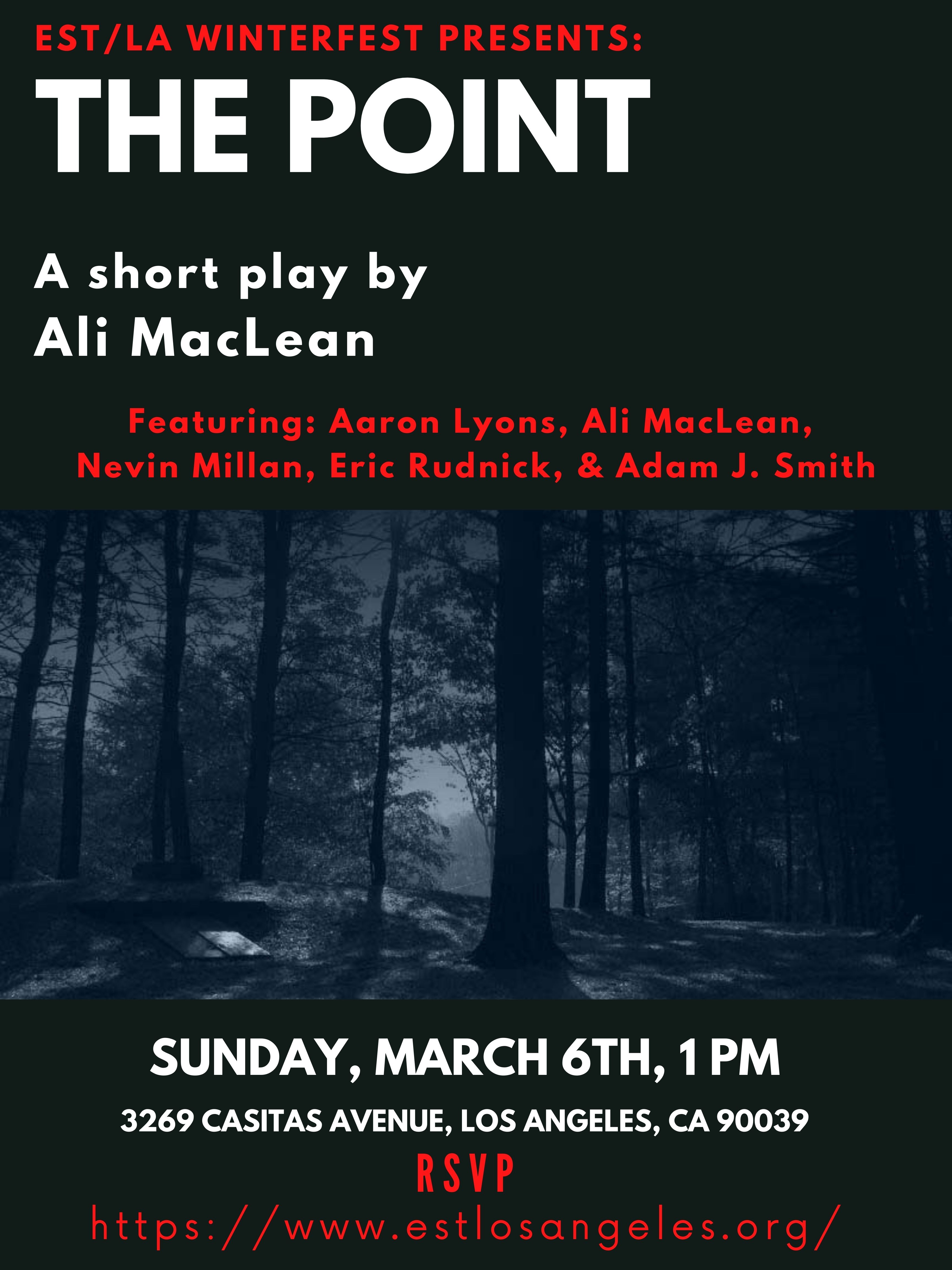 Ali MacLean’s edgy short play The Point was presented on Sunday, March 6th as part of Ensemble Studio Theatre’s Winterfest Reading Series.