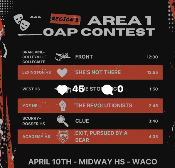 Ali MacLean’s award winning play, She’s Not There, which tackles living with depression and how it affects the people around you, was requested by the Lexington High School Theater program for their 2024 UIL competition play. Though MacLean doesn’t normally allow anyone to change her work, she made an exception so that the play could be seen by more young people.