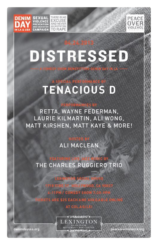 She also produced an annual comedy event called Distressed, for Peace Over Violence’s Denim Day programming. The show showcased some of the top comedians and artists in the nation.