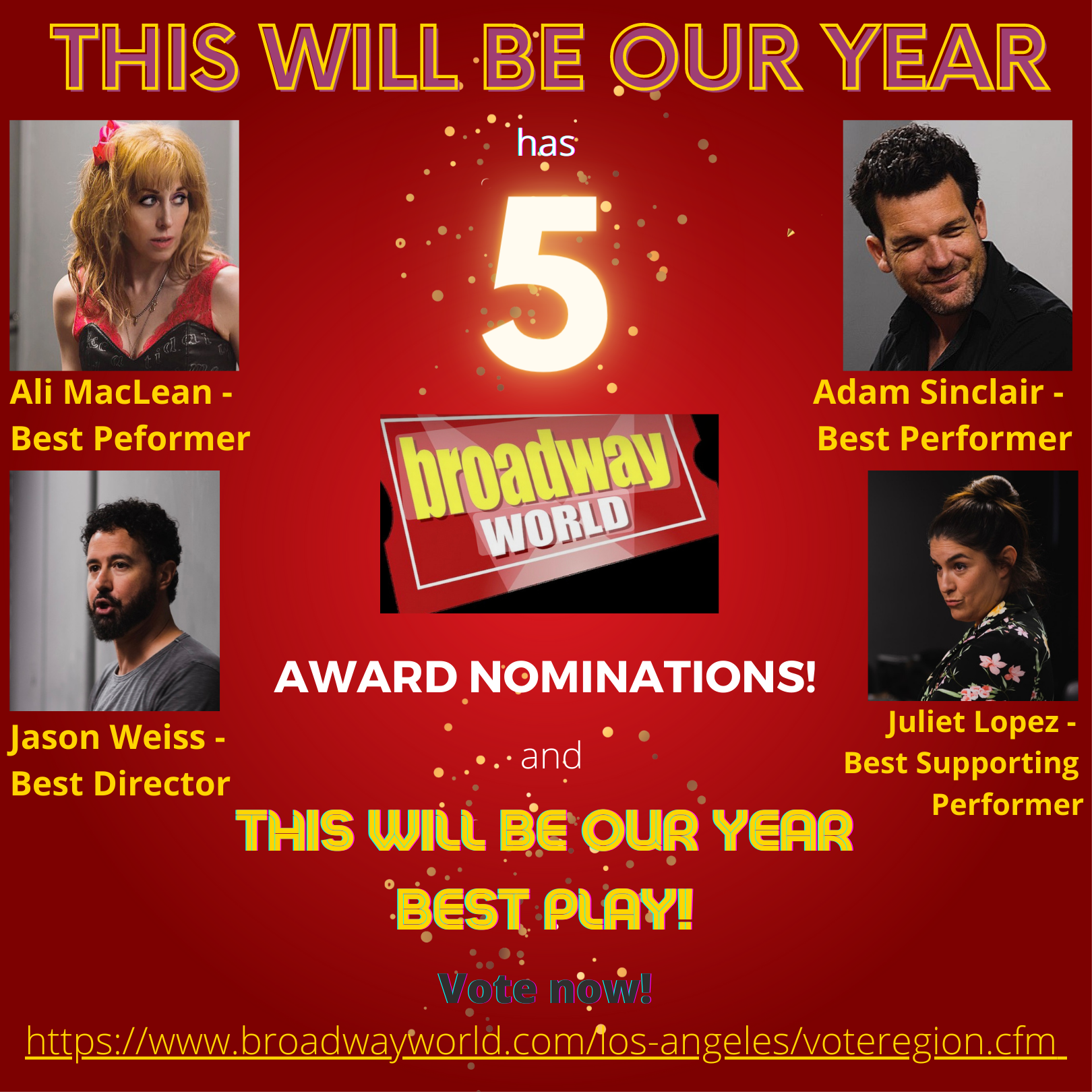 The show picked up five Broadway World Award nominations, including nods for Best Play, Best Director, and Best Performer.