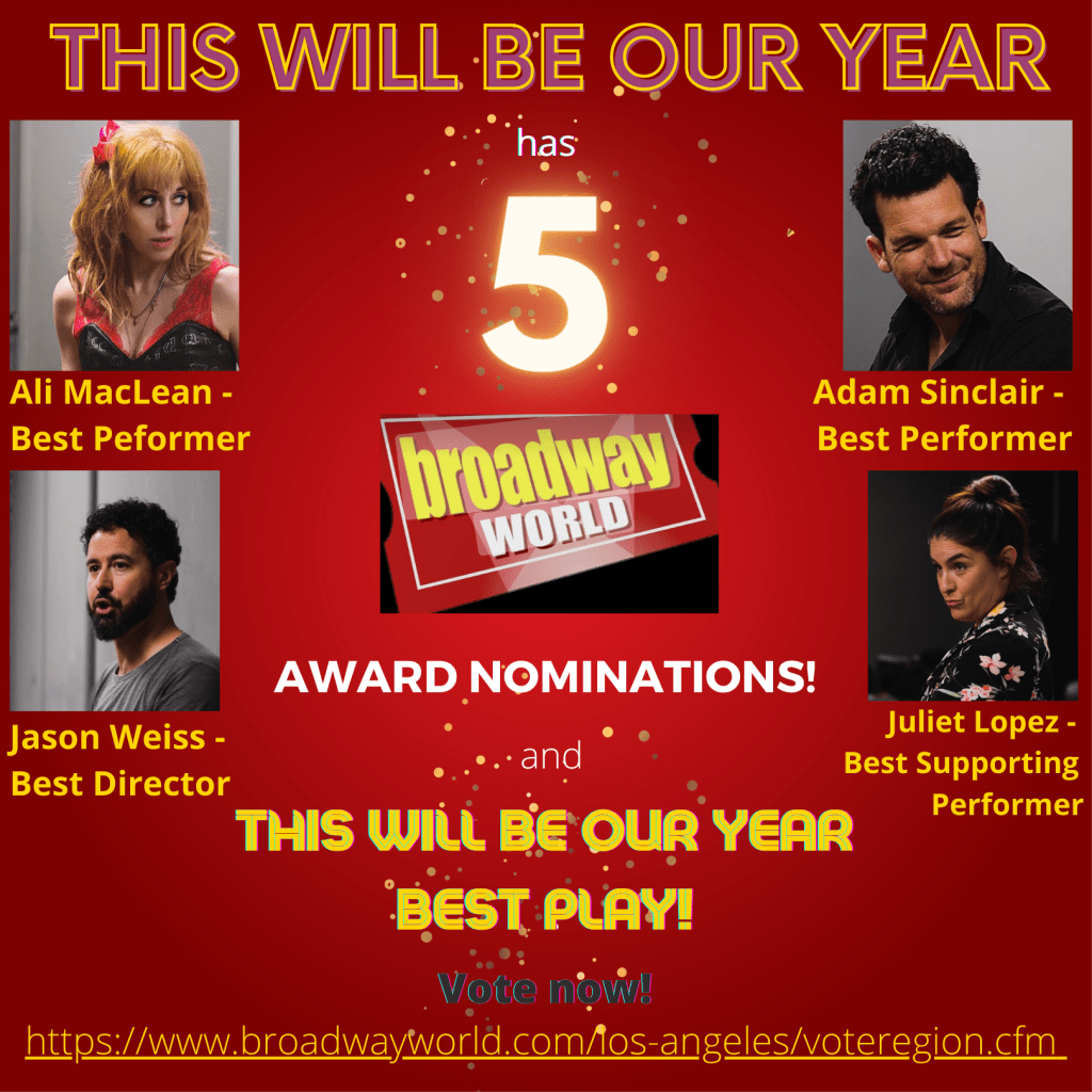 Based on true events that occurred when MacLean worked as an on-air personality at a punk rock radio station, This Will Be Our Year was workshopped at the Antaeus Theater, Ensemble Studio Theatre, and She NYC Arts Festival (at the Zephyr Theater), where it played to sold-out crowds.